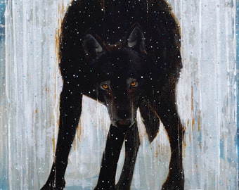 / Beautiful Black Wolf Art - Black Wolf Wolf Canis Lycaon And Canis Lupus Fine Art Print - Halloween full moon wolf blood red.