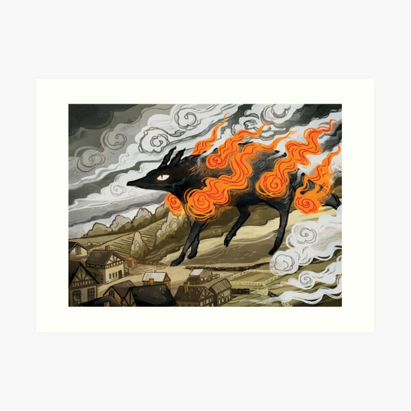 Beautiful Black Wolf Art - Black Wolf Wolf Canis Lycaon And Canis Lupus Fine Art Print - Halloween full moon wolf blood red.